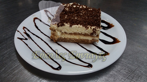 στον πάτο του πυρέξ ή του ταψιού, διπλή στρώση μπισκότα. Στρώνουμε το μισό από
